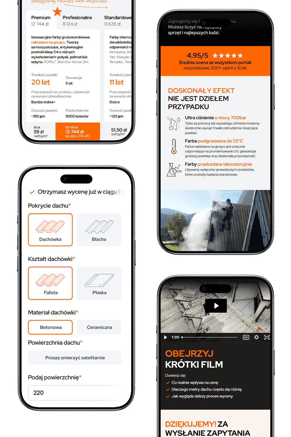 Kalkulator Grupy Biotop, w zakładce cennik, przy sporządzaniu wyceny za usługę kompleksowego malowania dachu (wraz z farbą), automatycznie dolicza współczynnik pofalowania dla wybranego kształtu pokrycia dachu. Wystarczy zaznaczyć odpowiednie opcje pokrycia dachu oraz podać parametry takie jak: powierzchnia dachu i lokalizacja (kod pocztowy). Możesz też skontaktować się z nami, a my wykonamy za Ciebie pomiar satelitarny.